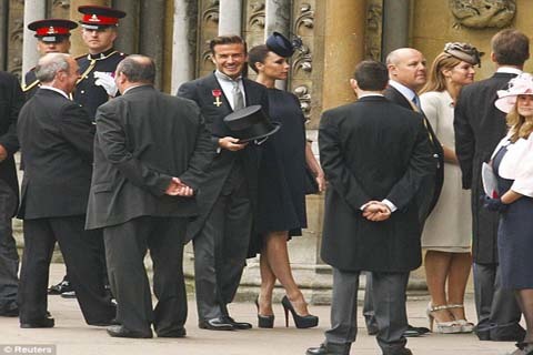 Vợ chồng David và Victoria Beckham. Victoria trông sang trọng với chiếc váy do