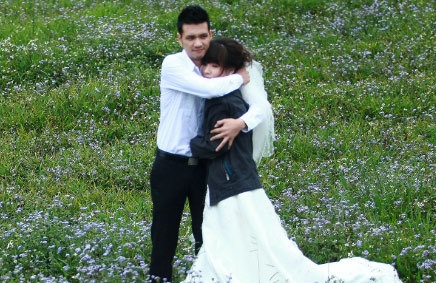 Trời mưa gió như cuộc đời nhiều gió mưa? Theo tiết lộ của một người trong ê kíp thực hiện bộ ảnh cưới lãng mạn này thì sau buổi chụp cả cô dâu chú rể đều lem luốc vì bùn đất, quần áo bẩn bê bết, nhưng họ vẫn cười tươi bên nhau.