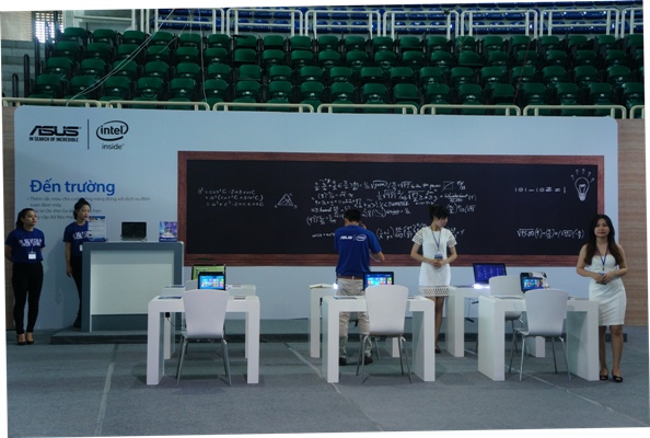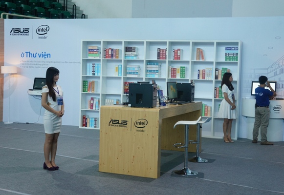 Trường học: mô hình lớp học với các sản phẩm công nghệ hỗ trợ từ Asus như laptop, máy tính bảng…Ngoài ra còn có một thư viện bên cạnh để học sinh có thể tra cứu thông tin…
