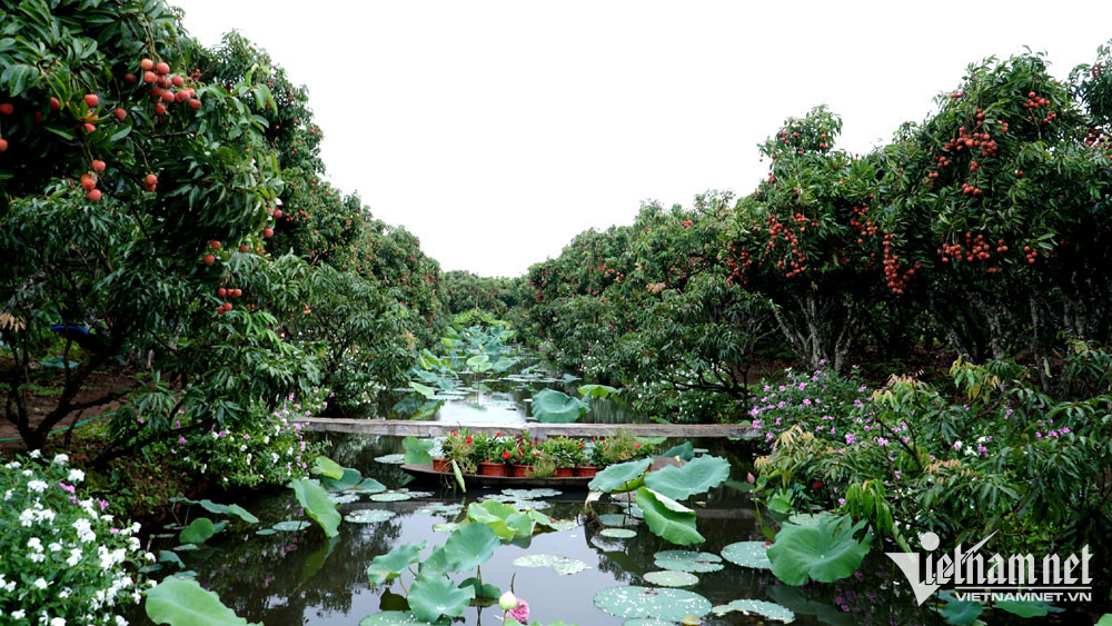 Đến năm 2015, chị nhen nhóm ý định làm du lịch từ cây vải thiều. Từ đó, vợ chồng chị bắt đầu quy hoạch, tạo cảnh quan cho vườn. Vải được trồng thành theo hàng, giữa mỗi hàng cây là con kênh nước nhỏ có hoa sen, hoa súng... Lối vào vườn được bê tông hoá thuận tiện cho khách tham quan.