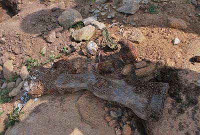 Như tin đã đưa, trước đó nhận tin từ một số người rà sắt phế liệu tại khu vực trên đã phát hiện hài cốt liệt sĩ. BCH Quân sự huyện Đức Phổ phối hợp với UBND xã Phổ Thạnh tiến hành khai quật.
