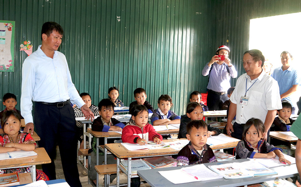 Đồng chí Trần Huy Tuấn - Chủ tịch UBND tỉnh Yên Bái thăm phân hiệu Kể Cả, Trường Phổ thông dân tộc bán trú TH&THCS xã Chế Tạo.