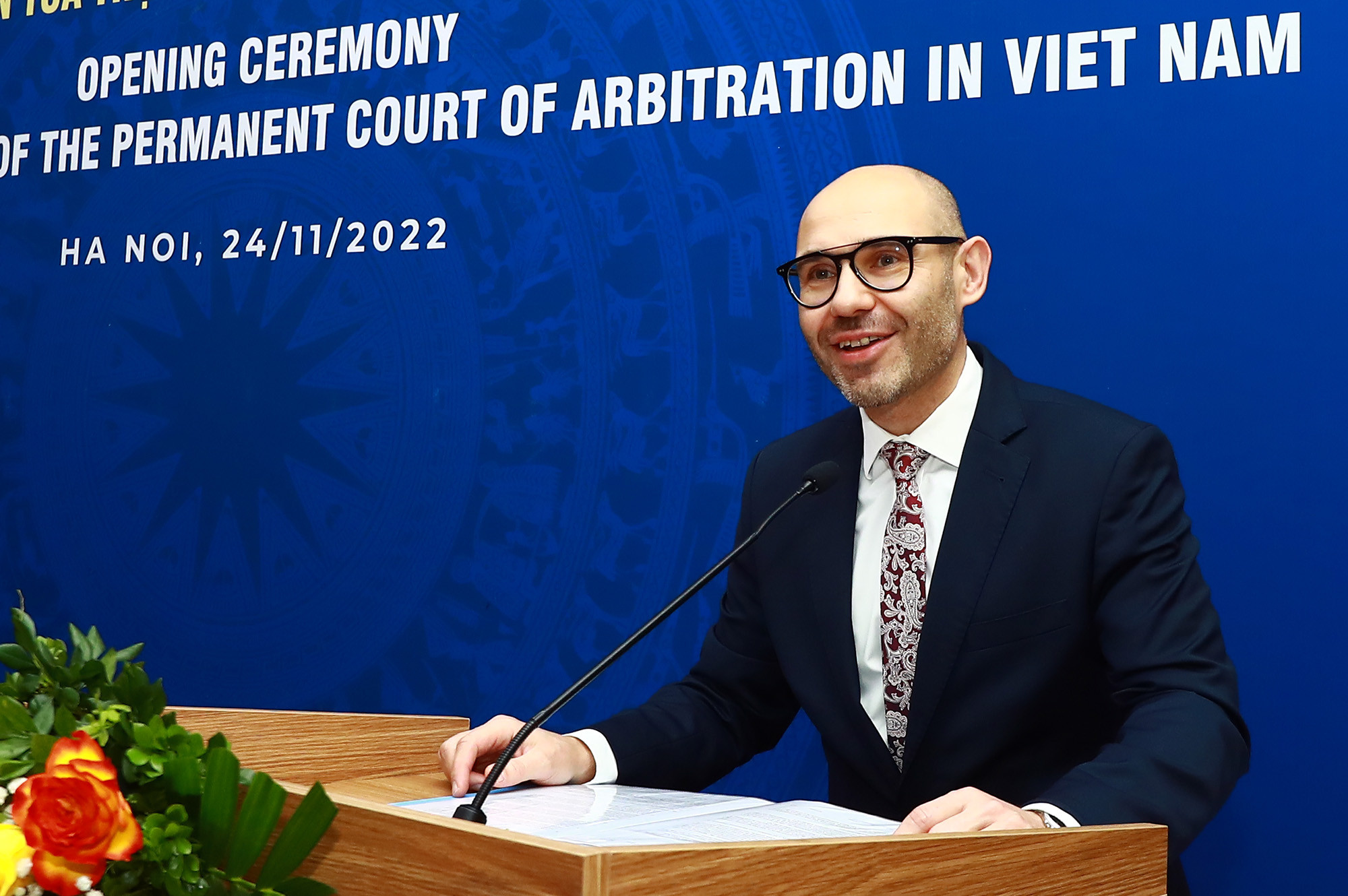 Tổng Thư ký PCA Marcin Czepelak khẳng định Văn phòng đại diện tại Hà Nội được khai trương là dấu mốc quan trọng trong quan hệ đối tác, hợp tác sâu rộng và hiệu quả giữa hai bên nhiều năm qua, là bước tiến quan trọng của quá trình hội nhập của Việt Nam, thể hiện vai trò, vị thế của Việt Nam là thành viên tích cực, có trách nhiệm của cộng đồng quốc tế, chủ động thúc đẩy tuân thủ luật pháp quốc tế và hoà bình giải quyết tranh chấp.