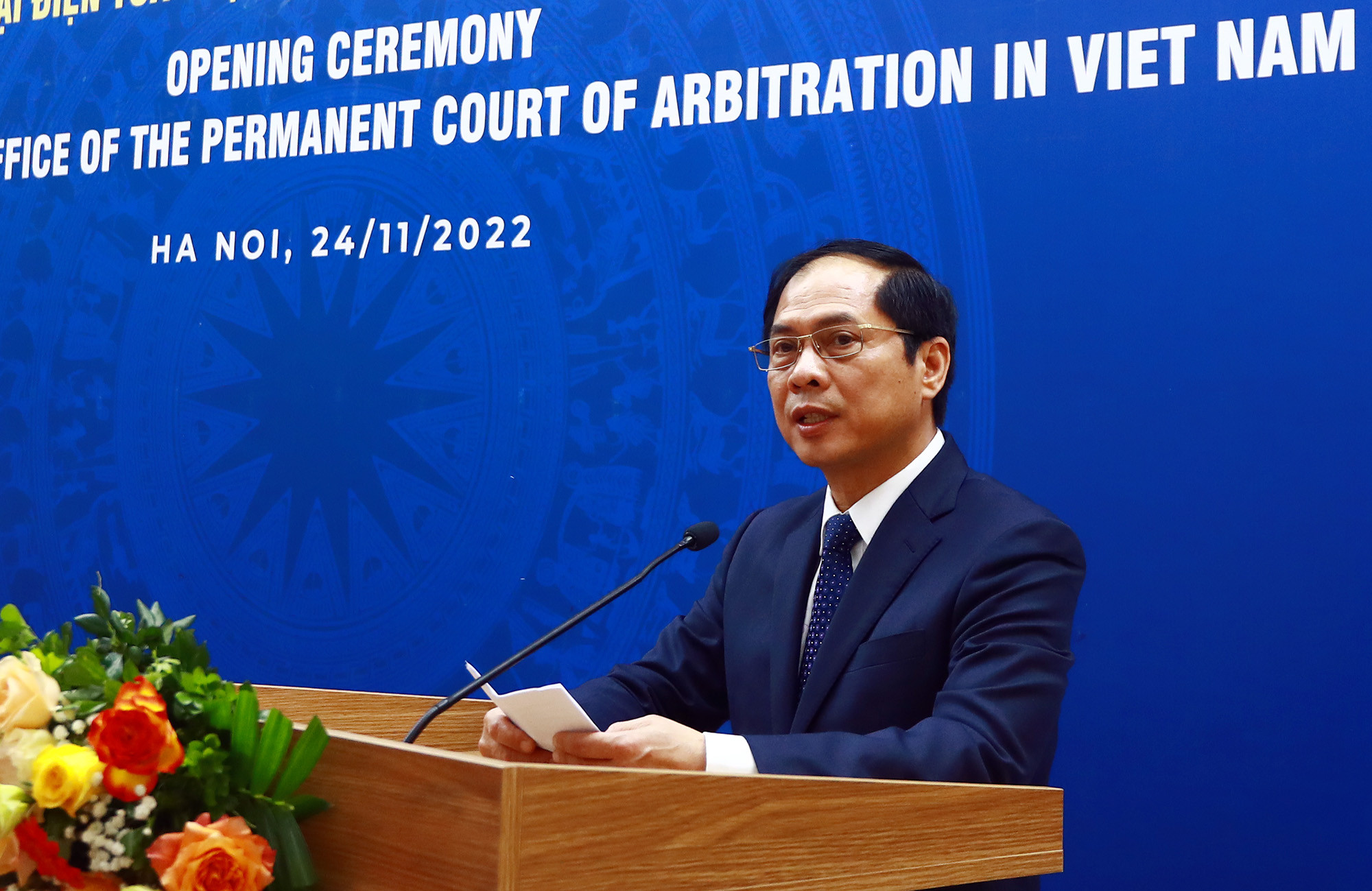 Bộ trưởng Bùi Thanh Sơn chúc mừng Văn phòng PCA chính thức đi vào hoạt động, hiện thực hóa cam kết của hai bên tại Nghị định thư năm 2021. Bộ trưởng Bùi Thanh Sơn khẳng định Việt Nam đánh giá cao vai trò của PCA là cơ quan giải quyết tranh chấp quốc tế, đã đóng góp hiệu quả và tích cực vào giải quyết tranh chấp giữa các quốc gia và giữa quốc gia với các tổ chức, bảo đảm tuân thủ luật pháp quốc tế, góp phần duy trì hòa bình và an ninh quốc tế.
