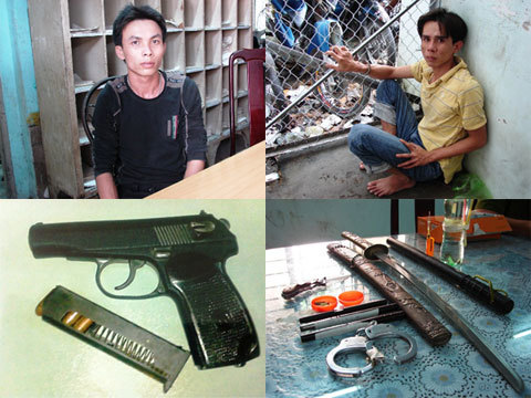 Ngay trong đêm 7/7 Quốc cũng sa lưới. Điều đặc biệt khi khám xét nhà Quốc tại P.Linh Xuân, Q.Thủ Đúc, cơ quan công an đã thu giữ nhiều loại vụ khí như: 3 khẩu súng tự chế, 7 viên đạn, 1 còng số 8, 1 thanh kiếm (loại kiếm Nhật), 1 dao bấm, nhiều dụng cụ để sử dụng ma túy….