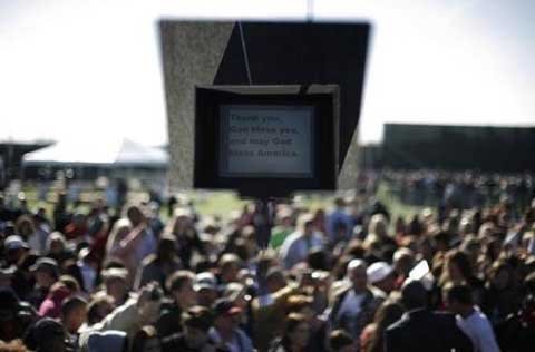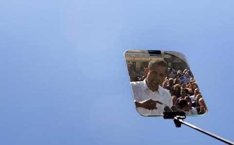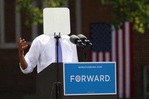 Tháng 8/2012, một chiếc máy phóng đại chữ che mất khuôn mặt của Tổng thống Obama khi ông phát biểu tại một buổi vận động tranh cử ở một trường đại học ở Columbus, Ohio.