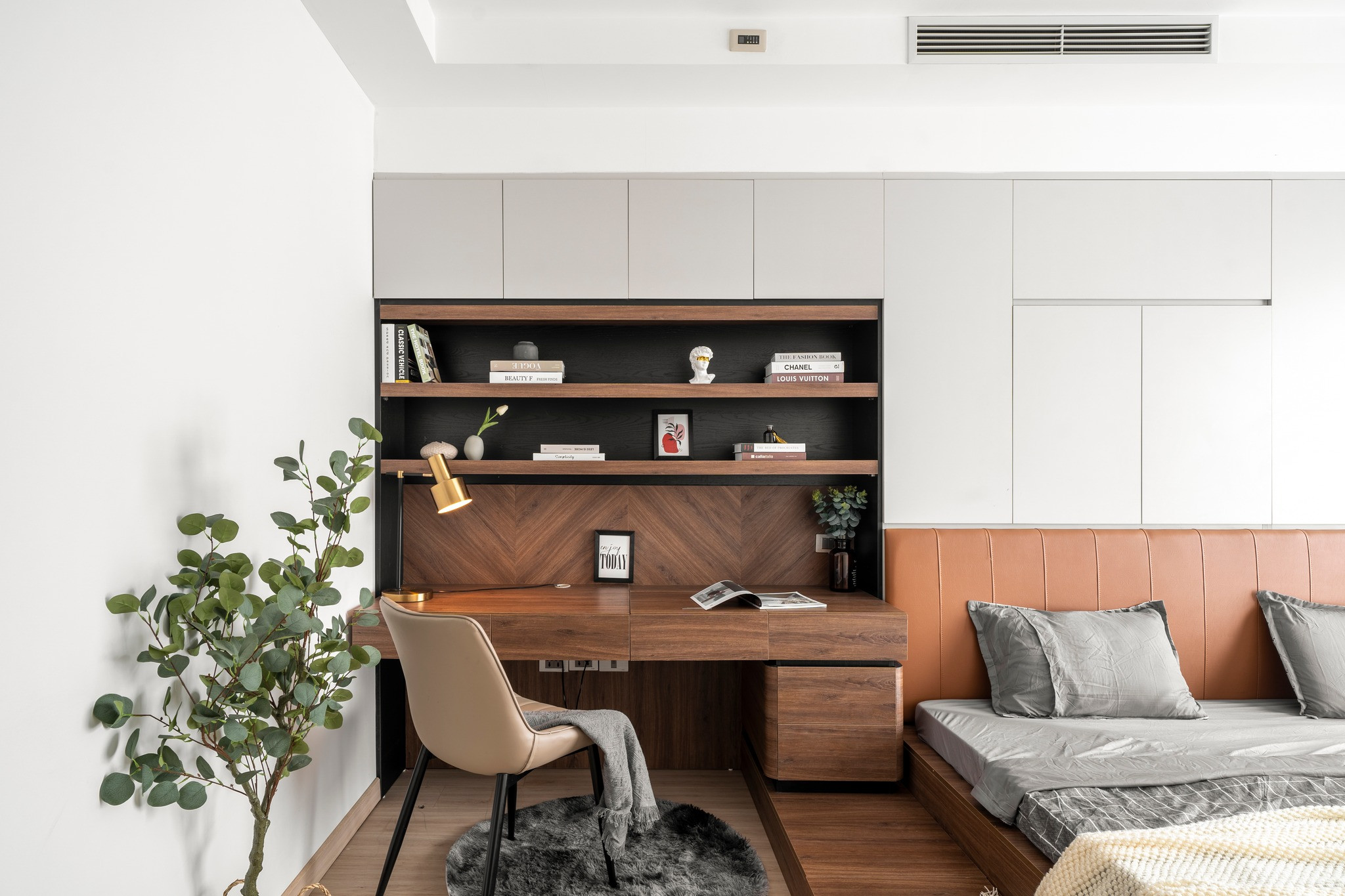 Đầu giường là tủ âm tường với cánh phẳng, nơi cho gia chủ cất đồ đạc thật ngăn nắp.