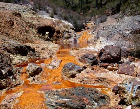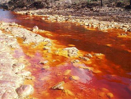 Dòng sông chảy theo những bậc thang trên nền những kim loại nặng như: sắt… và có cả axit trong dòng nước.