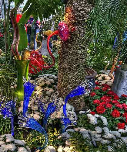Bằng tài năng và sự khéo léo, những nghệ nhân thổi thủy tinh đã tạo ra những bông hoa tuyệt sắc từ chất liệu kỳ lạ này. Dale Chihuly là chuyên gia trong lĩnh vực thổi thủy tinh. Những tác phẩm tuyệt đẹp của ông đã được triển lạm khắp nơi trên thế giới: Mỹ, Canada, Anh, Singapore, Các tiểu vương quốc Ả rập thống nhất.