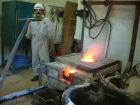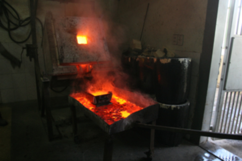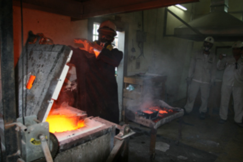 | Công đoạn nấu vàng và đổ ra khuôn đúc vàng thành từng thỏi |