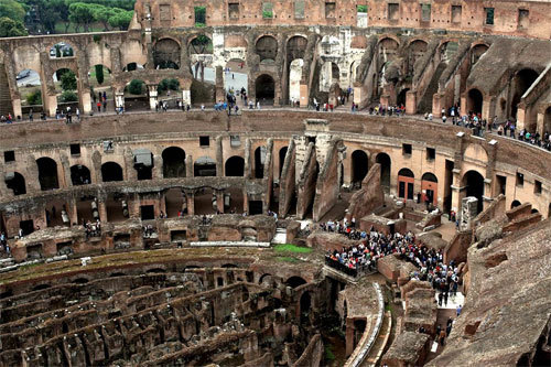 Đấu trường La Mã: Khách du lịch đi bộ trong khu Đấu trường La Mã, Rome. Đây là khu di tích mới được mở cửa từ tháng 10 năm ngoái để khách du lịch viếng thăm.