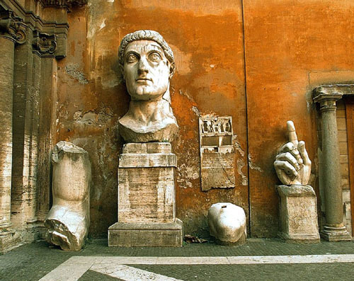 Bảo tàng Capitole: Mảnh vỡ bức tượng cổ bên trong sân Bảo tàng Capitole, nằm tại Quảng trường Campidoglio, Rome. Bảo tàng Capitole chứa bộ sưu tập đồ cổ từ năm 1471, từ thời Đức Giáo Hoàng Sixte IV.