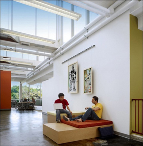 | Phòng làm việc của nhân viên Facebook ưu tiên gọn gàng và nhiều ánh sáng. |