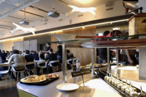 | Phòng ăn, nơi các nhân viên của Google tiếp sức sau những giờ làm việc mệt mỏi. |