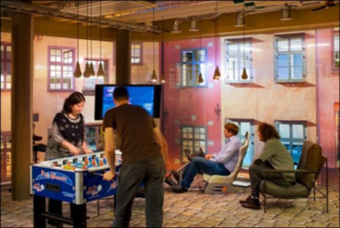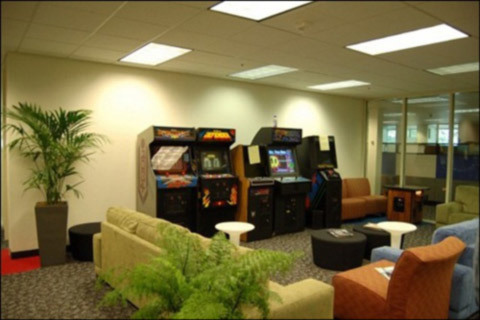 | Một khu giải trí khác với những máy chơi game. Có vẻ Google rất coi trọng bầu không khí trong công ty nên đã đặt vô số cây xanh ở các phòng. |