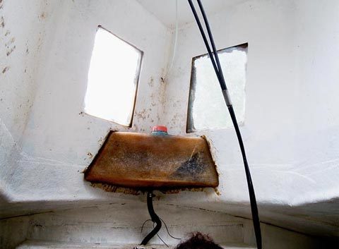 Hai cửa sổ nhỏ trong buồng lái của một chiếc tàu bán ngầm (không lặn được hoàn toàn dưới nước) từng bị thu giữ trước đây cho phép các thành viên thủy thủ đoàn quan sát sát chướng ngại vật cũng như sự xuất hiện của các nhà chức trách (ảnh trên). Chiếc tàu ngầm này hiện đang được cho neo đậu trên mặt nước ở trạm bảo vệ bờ biển Tumaco của Colombia.