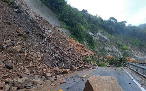 Tuyến Quốc lộ 8 đoạn qua xã Sơn Kim I (huyện Hương Sơn, tỉnh Hà Tĩnh) bị sạt lở taluy dương làm hơn 1.500m3 đất đá đổ sập xuống chắn ngang đường, gây ách tắc giao thông lên Cửa khẩu quốc tế Cầu Treo.
