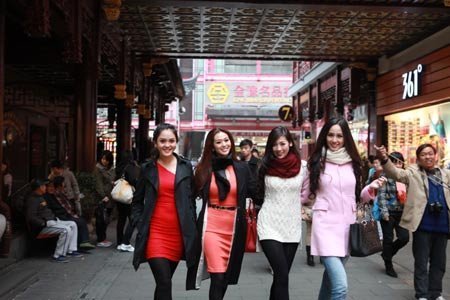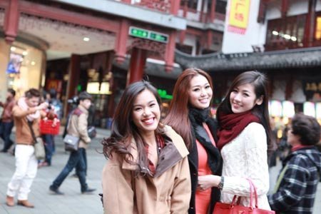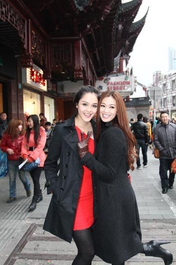 Mặc dù thời tiết khá lạnh nhưng 2 người đẹp vẫn rất xinh tươi khi dạo phố