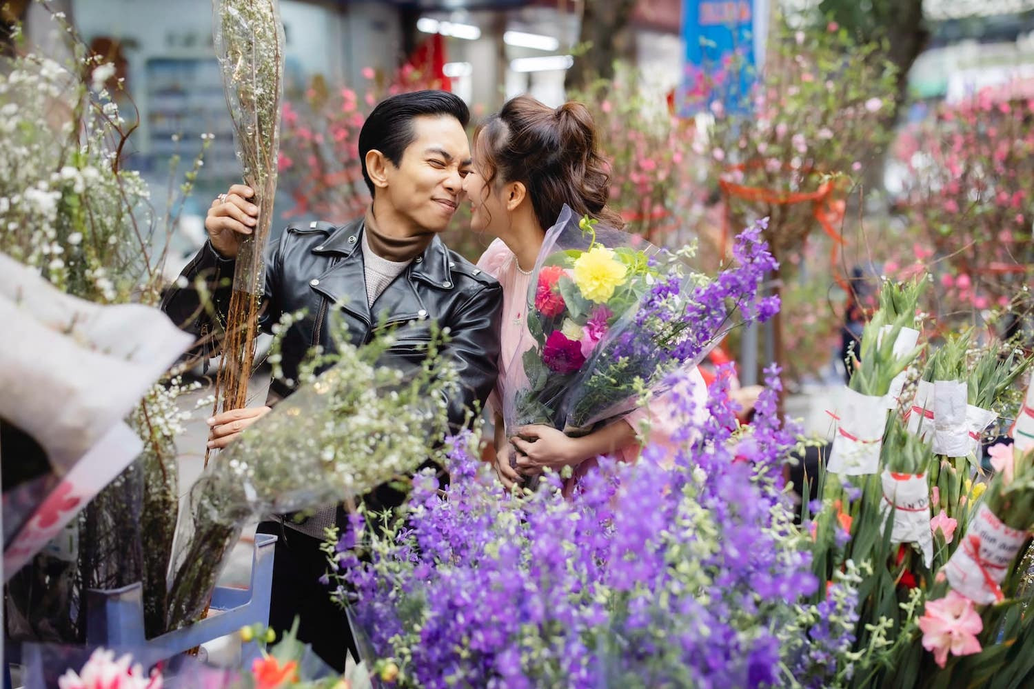 Khánh Thi đăng ảnh bên chồng trẻ Phan Hiển đi chợ hoa Tết ở Hà Nội.