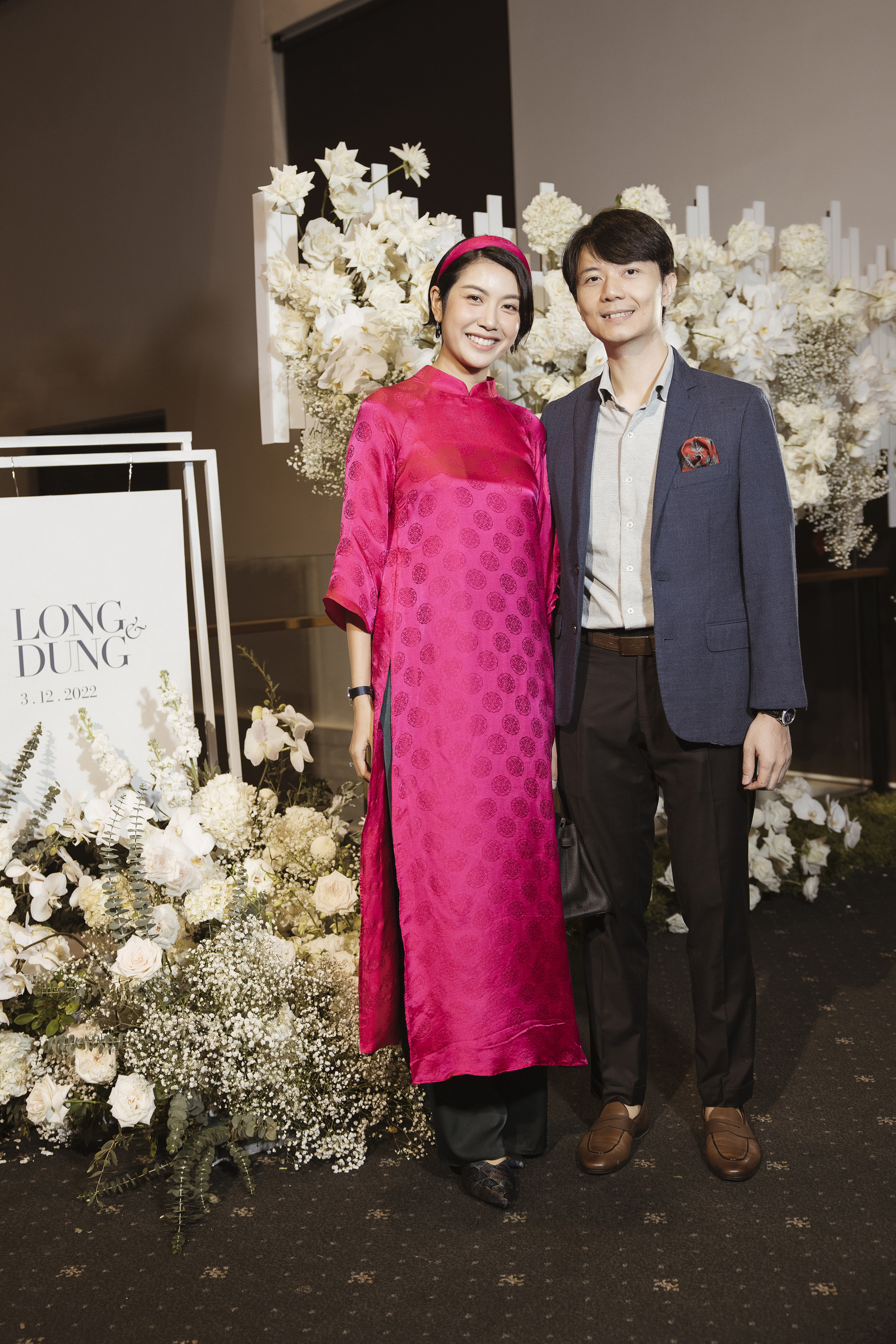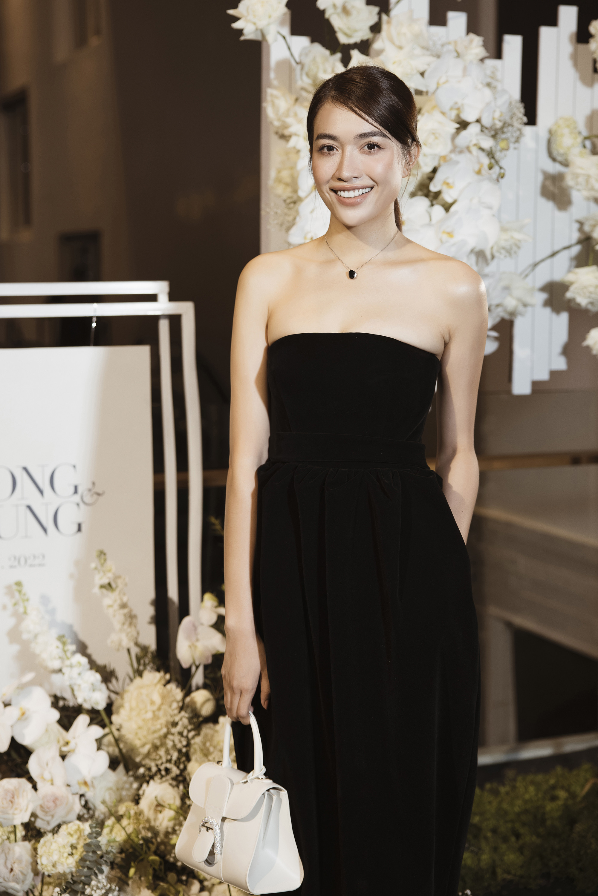 Khánh Vân và Tường Linh rạng rỡ tham dự hôn lễ của Thuỳ Dung. Đám cưới không yêu cầu khách mời mặc đồ theo tông màu chủ đạo nên dàn người đẹp có thể thoải mái lựa chọn màu sắc trang phục.Á hậu Thuý Vân diện áo dài cách tân nền nã cùng ông xã - doanh nhân Nhật Vũ đến chúc phúc cho đàn em thân thiết.Á hậu Lệ Hằng diện áo cúp ngực, phong cách trang điểm nhẹ nhàng, toát lên vẻ sang trọng, thanh lịch.Hoa hậu Khánh Vân đã góp mặt trong dàn phù dâu xinh đẹp tại lễ vu quy sáng 3/12 của á hậu Thuỳ Dung.Sau lễ vu quy được cử hành vào sáng 3/12, á hậu Quỳnh Châu tiếp tục tham dự buổi tiệc chiêu đãi quan khách, bạn bè của á hậu Thuỳ Dung và ông xã.Á hậu Kim Duyên xuất hiện với đầm xanh trang nhã, thu hút nhiều ánh nhìn. Người đẹp Tường Linh mặc trang phục ôm sát, khoe khéo đường cong cơ thể.Nhà thiết kế Lê Thanh Hòa dành những lời chúc mừng tới cặp đôi. Anh đã thiết kế cho cô dâu Thuỳ Dung 3 mẫu váy cưới nhẹ nhàng, thanh lịch trong ngày trọng đại. Diễn viên Tam Triều Dâng ghi điểm bởi phong cách trang điểm nhẹ nhàng nhưng vẫn xinh đẹp, nổi bật.