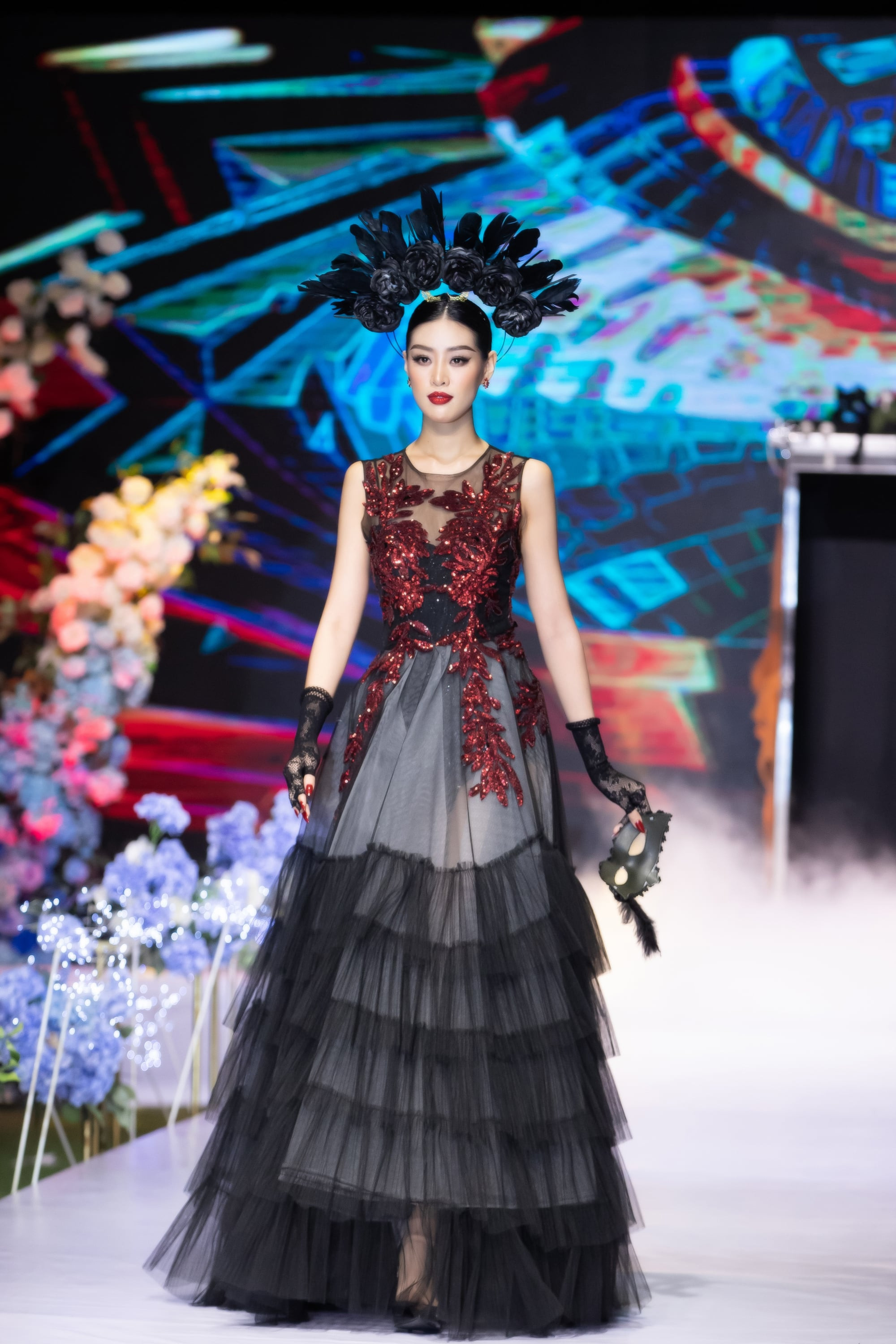 Hoa hậu Khánh Vân vừa tham gia một buổi trình diễn thời trang dành cho mẫu nhí với chủ đề về ngày Halloween. Cô mặc bộ cánh màu đen kết hợp phụ kiện hoạ tiết cách điệu, khoe thần thái xinh đẹp, tạo dáng đầy mê hoặc. Không gian sàn diễn được trang trí phù hợp với bối cảnh Halloween. Hoa hậu Khánh Vân dùng son môi đỏ, tạo điểm nhấn hài hoà với màu sắc trang phục. Hoá thân thành nàng công chúa Halloween, Khánh Vân tự tin chinh phục khán giả bằng phong thái trình diễn chuyên nghiệp của mình.