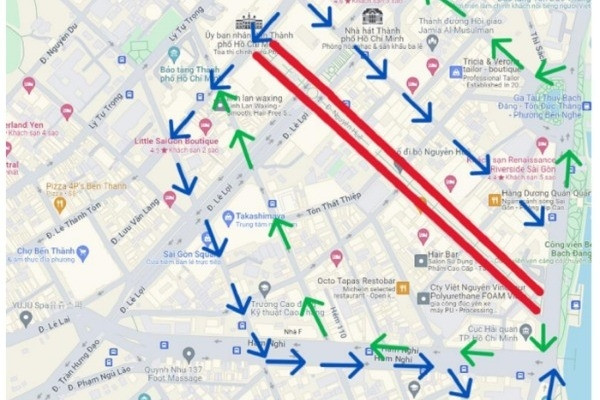 Đối với chương trình bắn pháo hoa chào đón năm mới 2024, từ 20h tối nay đến 1h ngày 1/1/2024, thành phố cấm tất cả các loại xe lưu thông vào 10 tuyến đường quanh phố đi bộ Nguyễn Huệ, công viên Bến Bạch Đằng, khu vực xung quanh vòng xoay Công trường Mê Linh…
