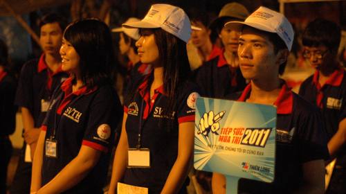 Sinh viên đầy hứng khởi với chiến dịch tiếp sức mùa thi. Ảnh: Văn Chung