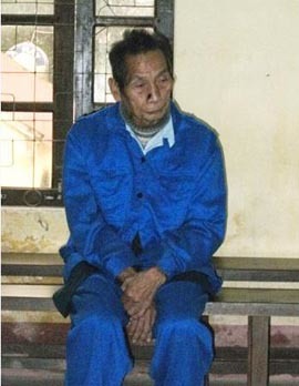 | Cụ ông Kha Văn Thủn trong phiên tòa xét xử tội "hiếp dâm" đứa bé 4 tuổi. |