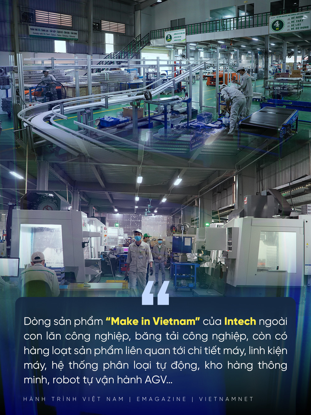 Dòng sản phẩm “Make in Vietnam” của Intech ngoài con lăn công nghiệp, băng tải công nghiệp, còn có hàng loạt sản phẩm liên quan tới chi tiết máy, linh kiện máy, hệ thống phân loại tự động, kho hàng thông minh, robot tự hành AGV…, đều đã khẳng định chất lượng trên thị trường.