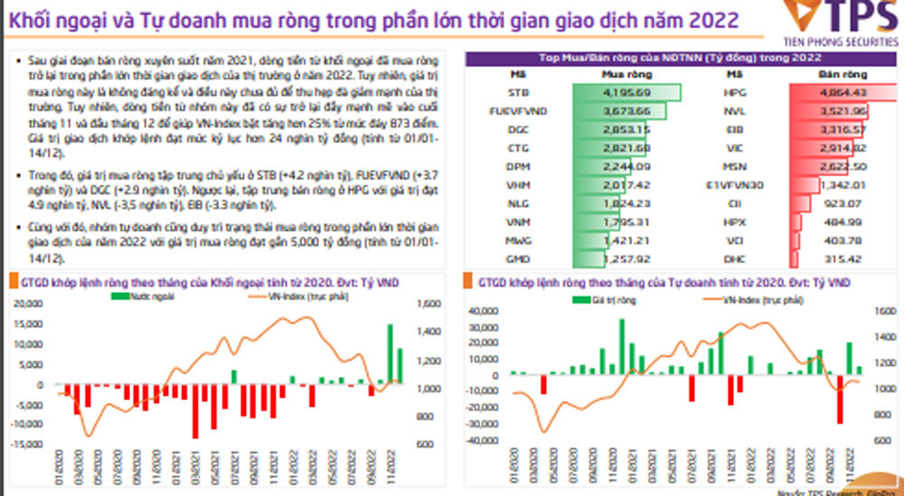 Mặc dù thanh khoản thấp vào thời điểm cuối năm nhưng thị trường chứng khoán được dự báo tích cực trong năm 2023 nhờ nền thấp, rủi ro đã được phản ánh phần lớn vào giá cổ phiếu. Nền kinh tế vẫn khá tích cực được cho là điểm tựa cho thị trường chứng khoán trong năm mới.