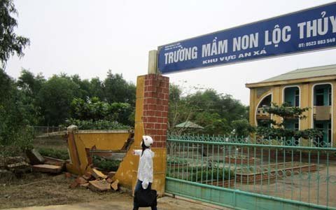 | Tường trường cũng sập |