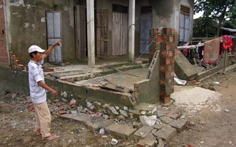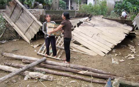 | Tường nhà dân sập |