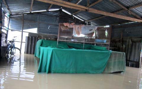 | Nước còn ngập nhà người dân |