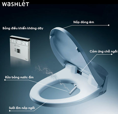 | Ảnh1: Nắp rửa điện tử washlet của TOTO với các chức năng hiện đại |