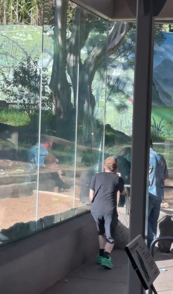 Đoạn video đăng tải trong bản tin trên kênh CBS8 cho thấy, Denny bất ngờ lao nhanh về phía vách kính, khiến nhiều du khách hoảng hồn, la hét và bỏ chạy.