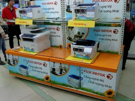 Khả năng sấy giấy tự động trong môi trường nhiệt đới như Việt Nam cũng khiến máy của Fuji Xerox vận hành ổn định, giảm thiểu tình trạng kẹt giấy. Kích thước nhỏ, gọn, nhẹ, nên dù là máy đơn sắc hoặc màu đa chức năng chỉ chiếm một diện tích khiêm tốn bằng 1/5 bàn làm việc thông thường. Máy tương thích với các loại máy tính Laptop, Notebook và Desktop, cài đặt dễ dàng trên hệ điều hành Windows hay Mac Os, dễ sử dụng. Máy được bán tại các siêu thị điện máy và đại lý máy tính trên toàn quốc.
