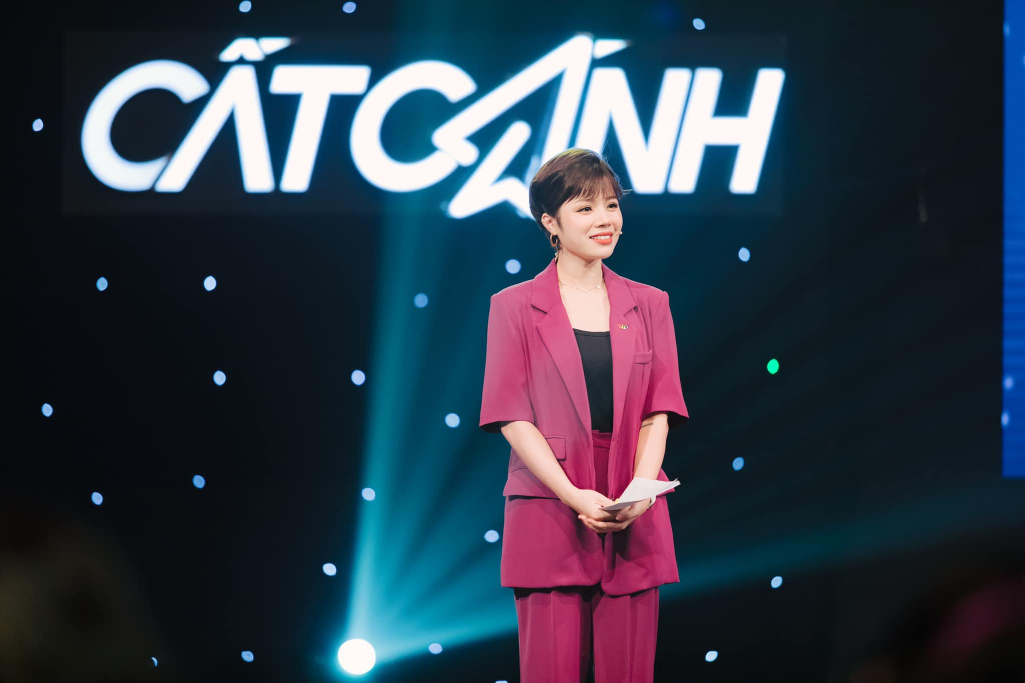 Thái Trang dẫn tiểu mục "Talk cuối tuần" trong bản tin Chuyển động 24h khá linh hoạt và ấn tượng.