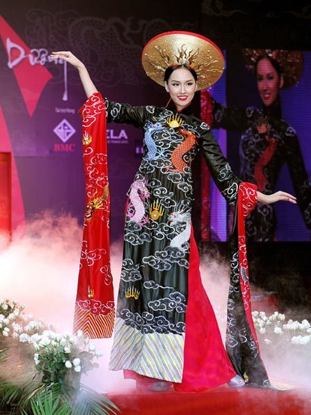 Dù có rất nhiều những bộ đầm hàng hiệu tuyệt đẹp, nhưng siêu mẫu Thanh Hằng vẫn quyết định chọn trang phục áo dài cho lần đầu tiên ra mắt. Diễn viên Hồng Ánh thì trẻ trung với áo dài cách điệu. Mỹ Duyên diện áo dài đỏ chói. Người mẫu Anh Thư mặc bộ áo dài đen quý phái khi sải bước trên thảm đỏ.