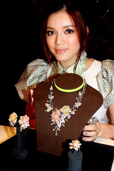 | Lý Nhã Kỳ với bộ trang sức kim cương vườn hồng có giá 10 tỷ đồng và được đặt mua ở Ý |