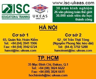 Ngoài ra, để được tư vấn về học bổng Anh quốc năm 2013 và 2014 với trị giá lên đến 100% học phí dành cho những học sinh có kết quả học tập cao và trình độ Anh ngữ vượt trội, xin liên hệ trực tiếp trước ngày 23/03/2013 với văn phòng ISC- UKEAS tại: