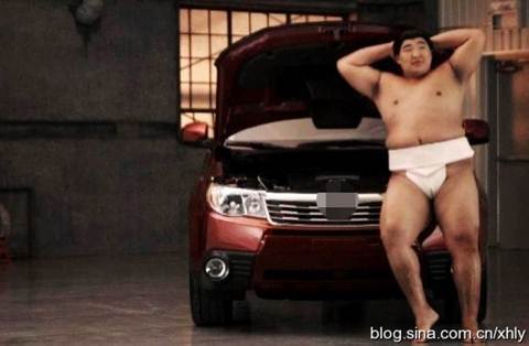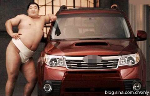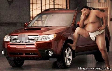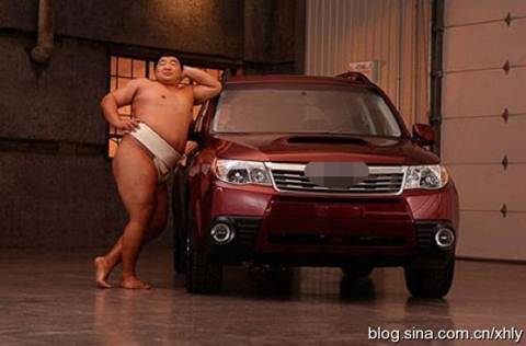 Bên chiếc xe hơi, lực sĩ Sumo cũng tự tin khoe dáng và tạo ra dấu ấn riêng nhờ phong cách trình diễn đặc sắc của mình.
