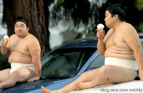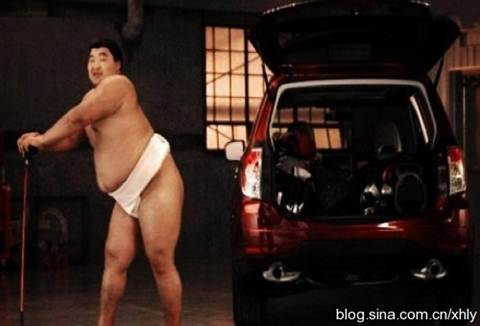 Thường khi tới các triễn lãm xe hơi, mọi người sẽ thấy những cô người mẫu chân dài đứng làm dáng và giới thiệu sản phẩm và không ai nghĩ rằng những lực sĩ Sumo cũng có thể đảm nhận được công việc này.