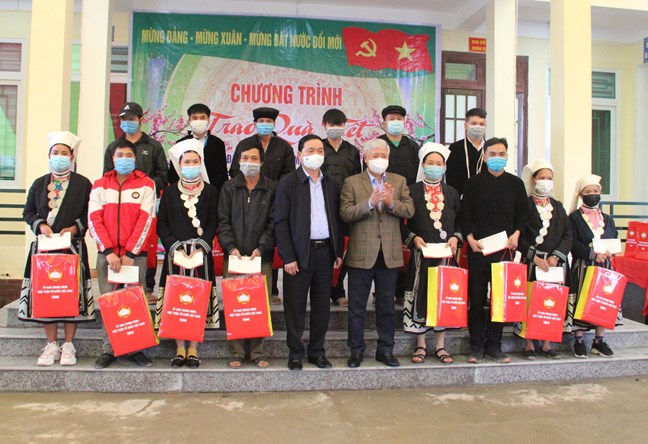 | Chủ tịch UBTƯ MTTQ Việt Nam Đỗ Văn Chiến tặng quà cho hộ nghèo, gia đình chính sách xã Thịnh Vượng, huyện Nguyên Bình, tỉnh Cao Bằng nhân dịp Tết nguyên đán Nhâm Dần năm 2022. |