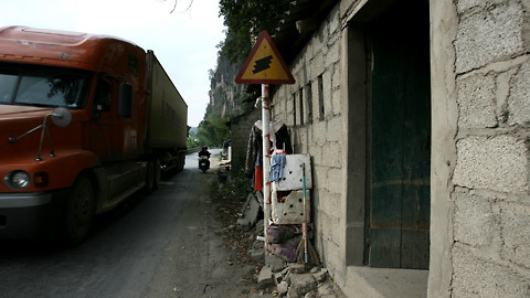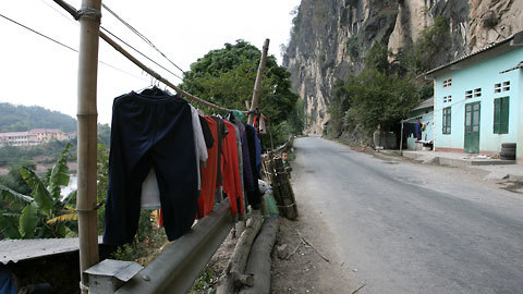là quốc lộ và vực sâu nên muốn phơi quần áo thì chỉ có ra đường.