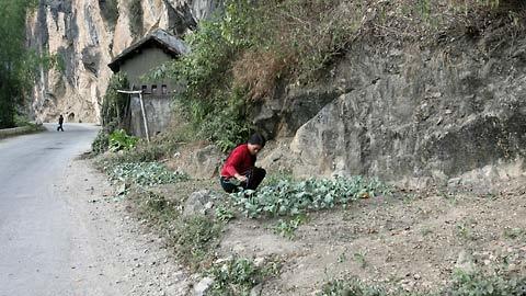 sống ở đây 23 năm đang chăm sóc vườn rau của gia đình nằm gần như