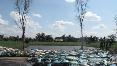 | Mủ cao su tạp chất chất từng đống để ngoài trời bốc mùi hôi thối nồng nặc, nước thải từ nhà máy không hề được xử lý, xả thẳng ra môi trường. |