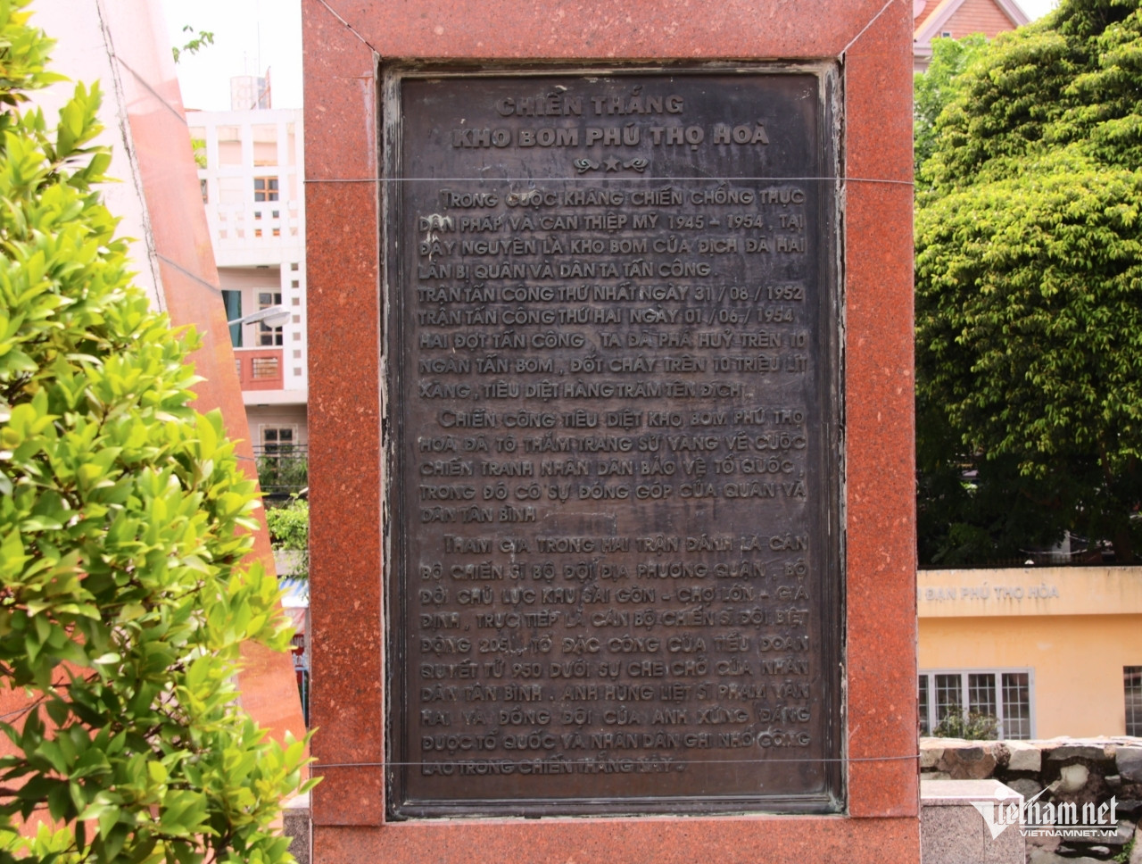 Phía trên nóc hầm di tích là tượng đài chiến sĩ đặc công. Bên trái tượng đài có bức phù điêu hình Anh hùng lực lượng vũ trang nhân dân Phạm Văn Hai, bên phải là bia ghi nhận chiến thắng trận đánh kho bom đạn Phú Thọ Hòa.