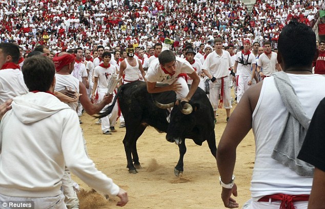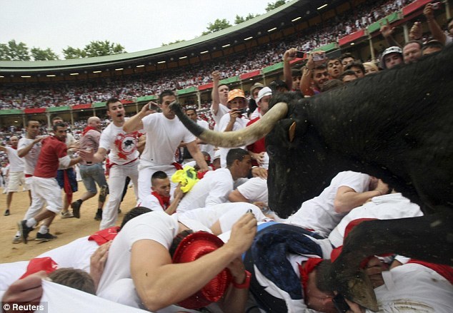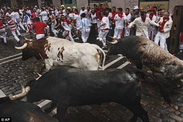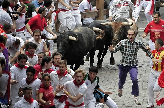 Một vài người khác cũng bị ngã khi bị những con bò tót khổng lồ được nuôi tại trang trại Miura rượt đuổi.