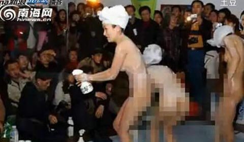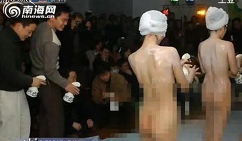 Nhiều người đã phải cúi gằm mặt hoặc quay đi chỗ khác khi chứng kiến màn quảng cáo gây sốc của một nhà sản xuất sữa tắm tại Trung Quốc.