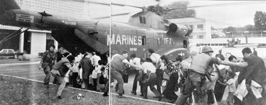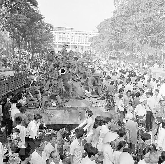 Ngày 9/4/1975, các đơn vị bộ binh và xe tăng thần tốc tiến về giải phóng Xuân Lộc, 'cánh cửa thép' - căn cứ phòng thủ trọng yếu của địch bảo vệ Sài Gòn từ phía Đông Bắc. Ngày 21/4, quân địch ở Xuân Lộc tháo chạy, cửa ngõ vào Sài Gòn từ hướng Đông Bắc đã được mở. Ảnh: TTXVN.Ngày 9/4/1975, quân ta tiến công thị trấn Xuân Lộc, căn cứ phòng thủ trọng yếu của địch bảo vệ Sài Gòn từ phía Đông Bắc. Ngày 21/4, quân địch ở Xuân Lộc tháo chạy, cửa ngõ vào Sài Gòn từ hướng Đông Bắc đã được mở. Ngay khi mất Xuân Lộc, Tổng thống Nguyễn Văn Thiệu từ chức. Ảnh: TTXVN.Ngày 14/4/1975, Bộ Chính trị quyết định đặt tên cho Chiến dịch giải phóng Sài Gòn - Gia Định là Chiến dịch Hồ Chí Minh với phương châm 'Thần tốc, táo bạo, bất ngờ, chắc thắng'. Trong ảnh: Đại tướng Võ Nguyên Giáp cùng các đồng chí trong Quân ủy Trung ương duyệt phương án tác chiến Chiến dịch Hồ Chí Minh (Hà Nội, 4/1975). Ảnh: TTXVN.Sau 4 ngày đêm chiến đấu, đến sáng 30/4/1975, các đơn vị của Sư đoàn 304 đã chính thức tiêu diệt toàn bộ cứ điểm căn cứ Nước Trong (Long Thành, Đồng Nai) của địch, mở toang 'cửa ngõ' cho lực lượng thọc sâu đánh chiếm các mục tiêu trong nội thành Sài Gòn. Đây cũng là một trong các trận đánh khốc liệt nhất của quân ta trong Chiến dịch Hồ Chí Minh. Ảnh: TTXVN.Lực lượng xe tăng Sư đoàn 10 (Quân đoàn 3) được nữ chiến sĩ biệt động Nguyễn Trung Kiên (Cao Thị Nhíp) dẫn đường, đánh chiếm sân bay Tân Sơn Nhất, ngày 30/4/1975. Ảnh: TTXVN.Xe tăng quân Giải phóng tiến vào chiếm Dinh Độc Lập ngày 30/4/1975. Ảnh: TTXVN.4 chiến sĩ đoàn Hương Giang tiến vào cắm cờ trên nóc phủ tống thống chính quyền Sài Gòn ngày 30/4/1975. Ảnh: TTXVN.Quân giải phóng cắm cờ chiến thắng, ngày 30/4/1975. Ảnh: TTXVN.Cờ giải phóng tung bay trên sân bay Tân Sơn Nhất, ngày 30/4/1975. Ảnh: TTXVN.Nhân dân Thủ đô vui mừng đón tin chiến thắng ngày 30/4/1975. Ảnh: TTXVN.Nhân dân Sài Gòn diễu hành mừng thành phố được giải phóng (ngày 15/5/1975). Ảnh: TTXVN.Nhân dân Sài Gòn đổ ra đường đón chào quân giải phóng, trưa 30-4-1975. Ảnh: TTXVN.Các bà mẹ có công với cách mạng, đại diện cho đội quân tóc dài trong ngày giải phóng. Ảnh: TTXVN.Người Mỹ rời khỏi Việt Nam bằng máy bay trực thăng trên nóc một tòa nhà cách sứ quán Mỹ ở Sài Gòn 500m, ngày 29/4/1975. Ảnh: TTXVN.Trong vòng gần 20 tiếng đồng hồ có hơn 7.800 người được di tản khỏi Sài Gòn, hình ảnh về sự thất bại toàn diện của Mỹ trong cuộc chiến tranh tại Việt Nam. Ảnh: TTXVN.